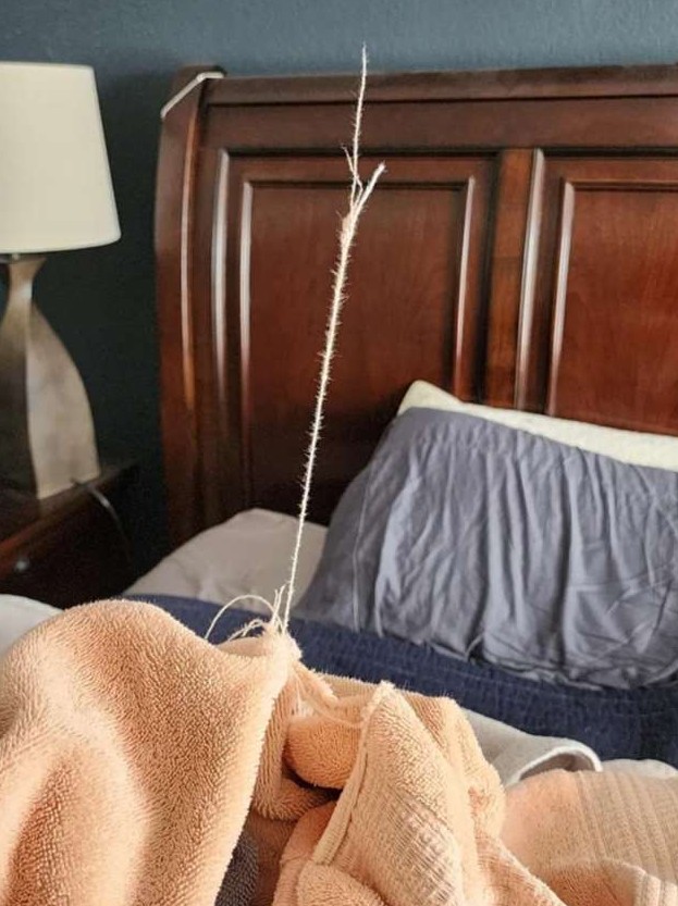 Статическое электричество, заставляющее нить из полотенца стоять прямо