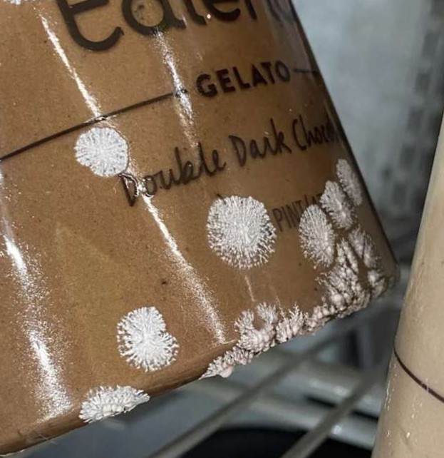«Обнаружено на мороженом в супермаркете. Подруга клянется, что это лед, но мне кажется, что это какая-то плесень»