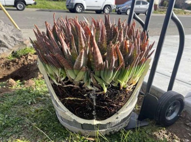 Разница в цвете между частями алоэ, которые получали и не получали солнечный свет
